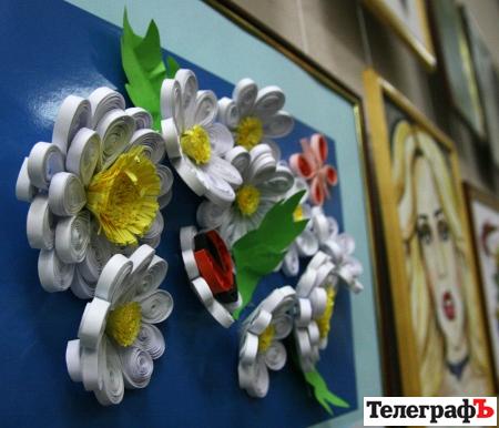 К 80-летию Кременчугского педагогического училища в городском музее открылась выставка работ его учеников. 250 (!) работ в самых различных техниках: квиллинг, акварель, гуашь, вытынанки, плетение бисером и многие другие.