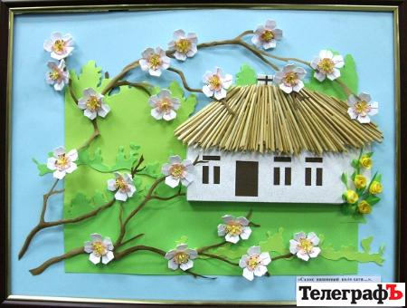 «Садок вишневий коло хати…» Папір, солома. Носкіна Н.