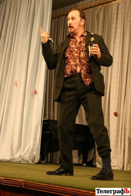Артисты творили на сцене все, что могли и хотели. А вместе с ними и директор ГДК Сергей Сытник, который на глазах у зрителя приготовил литературный коктейль «Канадский бальзам» по мотивам произведения «Москва – Петушки» (Вениамина Ерофеева) и… тут же выпил напиток, закусив аплодисментами зрителей. Нужно признаться, не каждый руководитель не каждого дворца культуры может на сцене так профессионально «дерзнуть, чтобы его не хватила кондрашка».