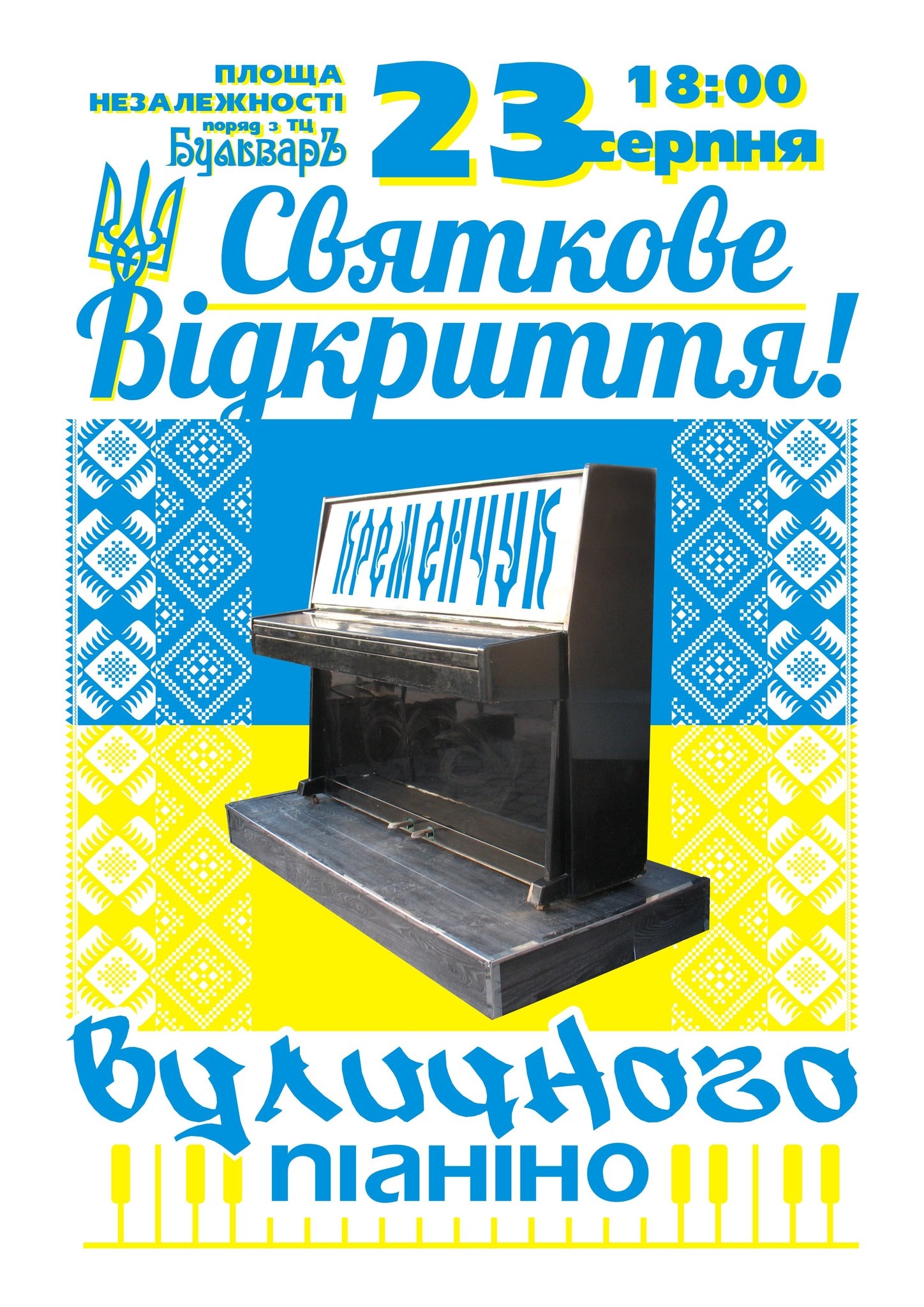 23 августа в Кременчуге опять откроют уличное пианино. На этот раз – на площади Независимости. Об этом сообщил «Телеграфу» художник Сергей Брилёв. По его словам установка инструмента согласована с ТЦ «БульварЪ», а также получила поддержку «Майдана».
