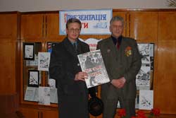 Завуч дитячої художньої школи Володимир Терещенко (зліва), якому довелося бути свідком початку афганської війни, привітав автора (праворуч) з виходом книги