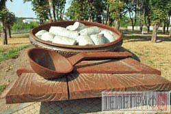 Полтава. Пам’ятник галушці. Диво-монумент відкрили 1 квітня 2006 року. Раніше він красувався на Соборному майдані біля Свято-Успенського кафедрального собору та музею-садиби Івана Котляревського. Та нещодавно, на прохання полтавської релігійної громади, галушку посунули на 200 метрів ? до найближчого ресторану. Полтавська влада з цього приводу не переймається. Мовляв, навпаки, нове розташування пам’ятника є більш вигідним з погляду панорами, що відкривається для фотографування.