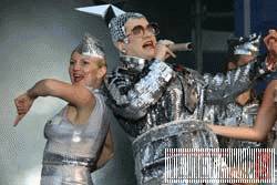 «Проводница» не заставила нас долго ждать: минут через 10 подъехал ее черный «Мерседес». Увидев толпу желающих поглазеть на подлинник, Верка закрылась веером. Мы заметили, что в машине звезда почему-то полулежала. Виной тому оказалась «звезда на лбу», которую Верка носит еще с «Евровидения». Директор Андрея Данилко резко вытащил звезду из машины – сам Андрей вылезти из авто в таком прикиде не смог бы. И тут мы обомлели. Не от восторга, а от наряда. Белые колготки стерты, вместо туфлей на каблуке простые туфли-лодочки, наряд подшит нитками, которые торчат во все стороны, «зеркальца» на костюме заляпаны, …Хорошо, что со сцены это не заметно.