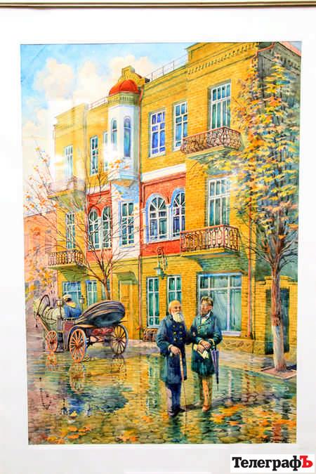 Коли усі палкі промови скінчились, ми зітхнули з полегшенням, і пішли, нарешті, дивитися акварелі Володимира Івановича. Ми розглядали маленьку невідому Вікусю, яка пила з величезної кружки молоко; двох старих під квітнучою абрикосою; тихі занасипські двори, що поросли бузком та лопухами, – і відчували, як поліпшується наш настрій. Душевні то були роботи. Та найбільше нас здивувала акварель із буденною назвою «Провулок Щорса». На нашу думку, провулок Щорса – одне з найнудніших та найнеромантичніших місць у Кременчуці. Важкі сірі багатоповерхівки, обідрані «хрущовки» та розпечений асфальт – ось і все, що ми там бачили. А на акварелі Володимира Дружка нудні похмурі багатоповерхівки стали вдалим ніжно-сірим фоном для рожевої квітнучої вишні. Ми подивились на цю вишню, зітхнули, і вкотре переконались – є люди, які посеред брудної березневої вулиці бачать калюжу. А є такі, що бачать у цій калюжі весну. Володимир Іванович Дружко саме такий. Подивіться його роботи – самі переконаєтесь.
