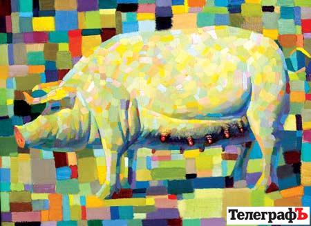 А коли скінчився херес, ми змогли, нарешті, роздивитися роботи. І страшенно зраділи, що у Кременчуці працюють такі сильні майстри. Отак стояли перед полотном «Ритм&блюз», і раділи, що його автор – Олексій Рубанов – кременчуцький художник. До речі, Рубанов – наш «китайский связной». Це його робота «Вогні великого міста» представляла всю Україну минулого року на масштабному бієнале у Пекіні. А на кременчуцькій виставці він презентував роботу «Національна ідея». Для себе ми її назвали простіше – «Дійна Свиня». Така, знаєте, зображена на полотні вишукана різнокольорова свинка, навіть свиноматка. Її творець – Олексій Рубанов – стверджує, що саме свиноматка символізує будь-яку національну ідею. А найперше українську. Ми з майстром погодились одразу. Адже дійсно, від так званої «національної ідеї» – як і від доброї свиноматки – харчується сила-силенна невдячних поросят-політиків. А коли виростають до розмірів вгодованого борова, забувають про маму-свиню. Пардон, про національну ідею.
