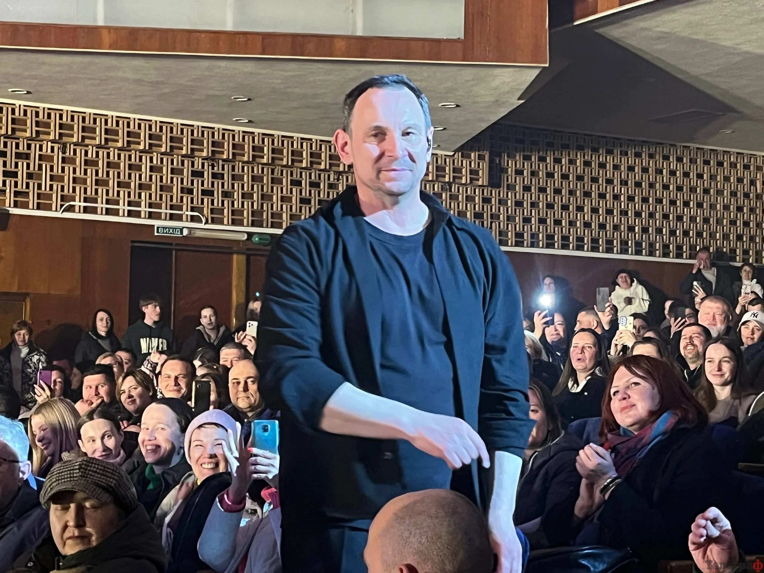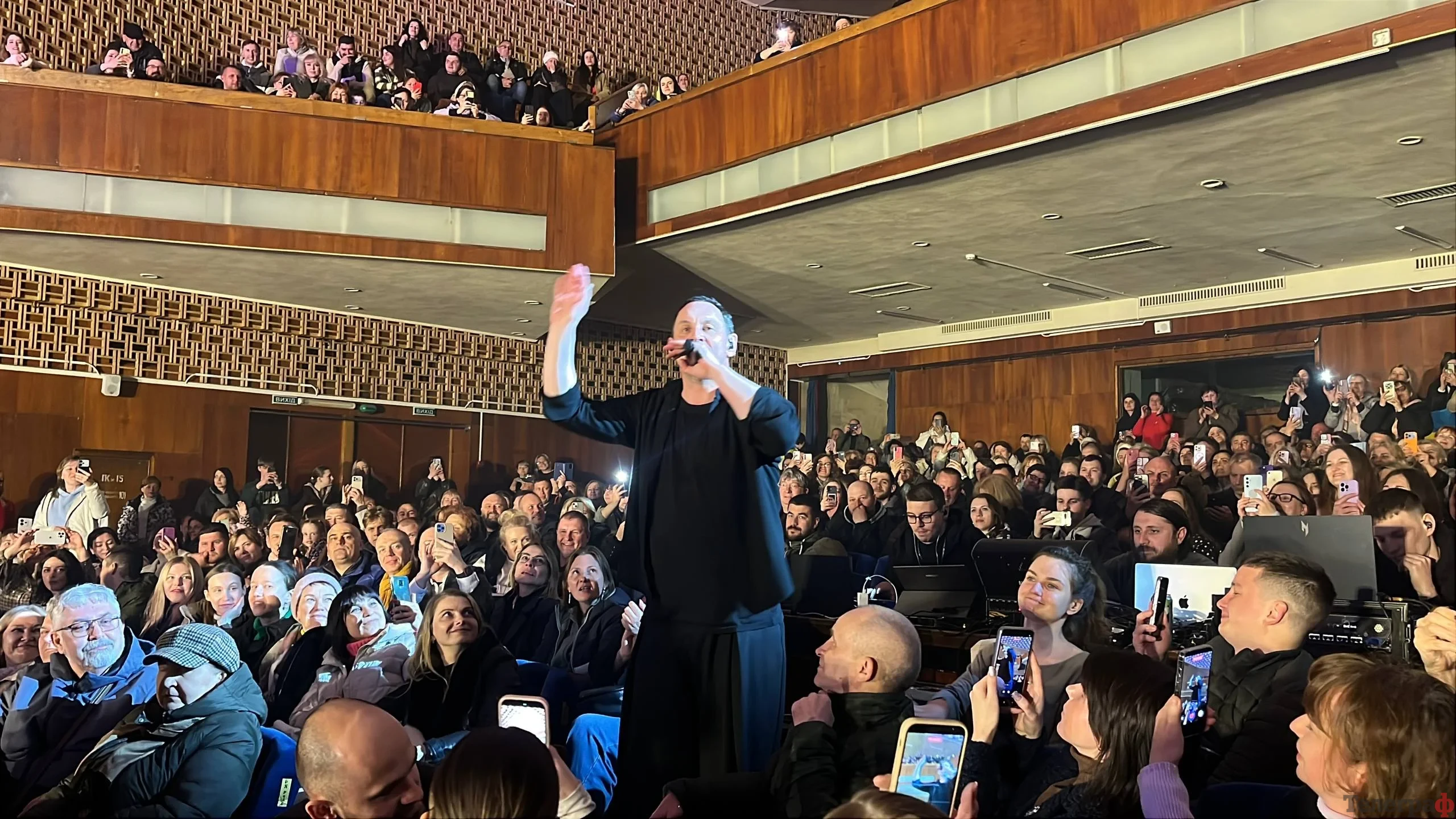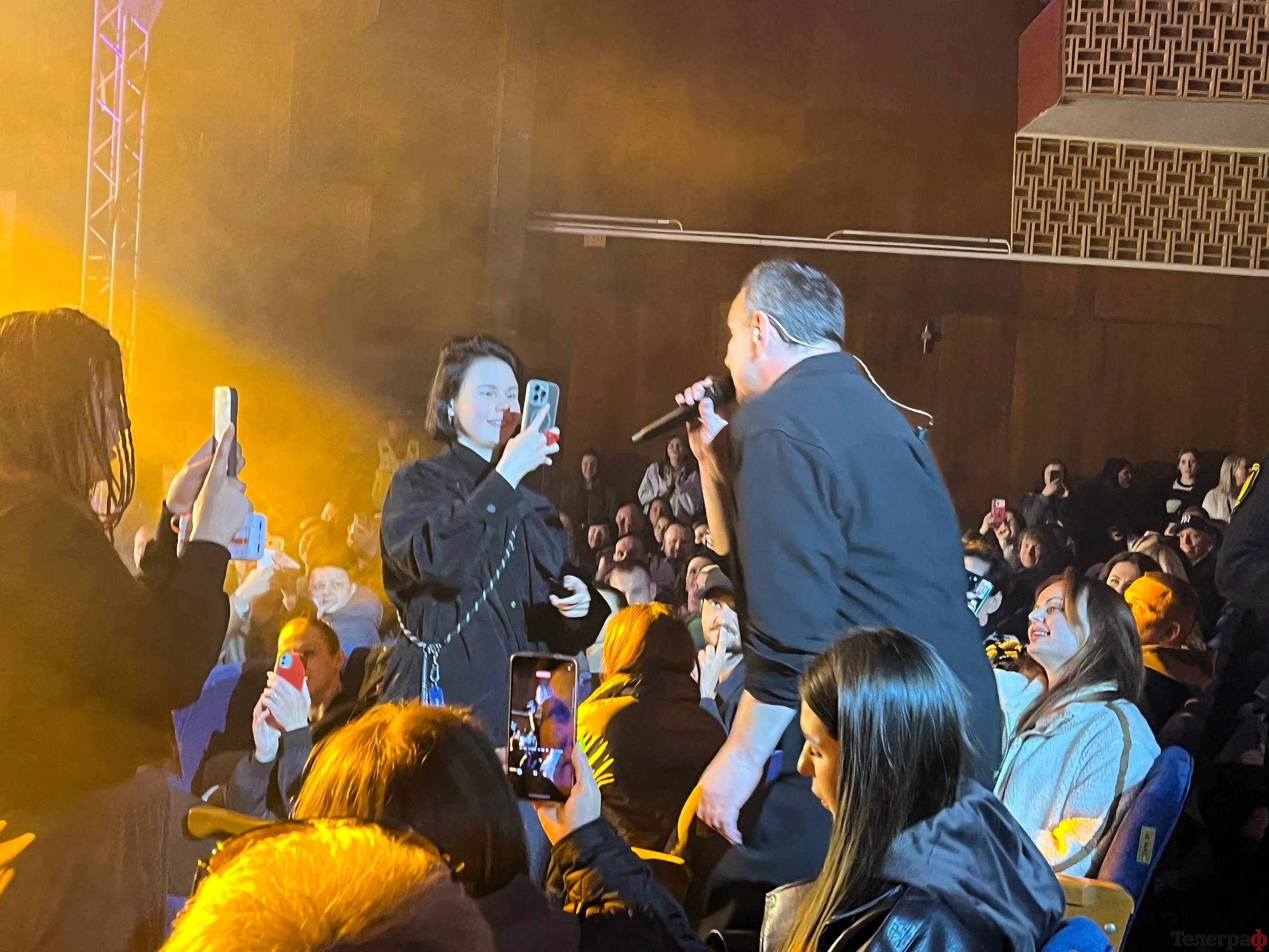 Це було не просто виконання пісень, а справжнє шоу. Харчишин виходив у зал, співав разом із кременчуківцями, диригував ними, перетворюючи глядачів на повноцінний хор. Зал відповідав взаємністю — люди співали кожне слово, танцювали й не стримували емоцій.