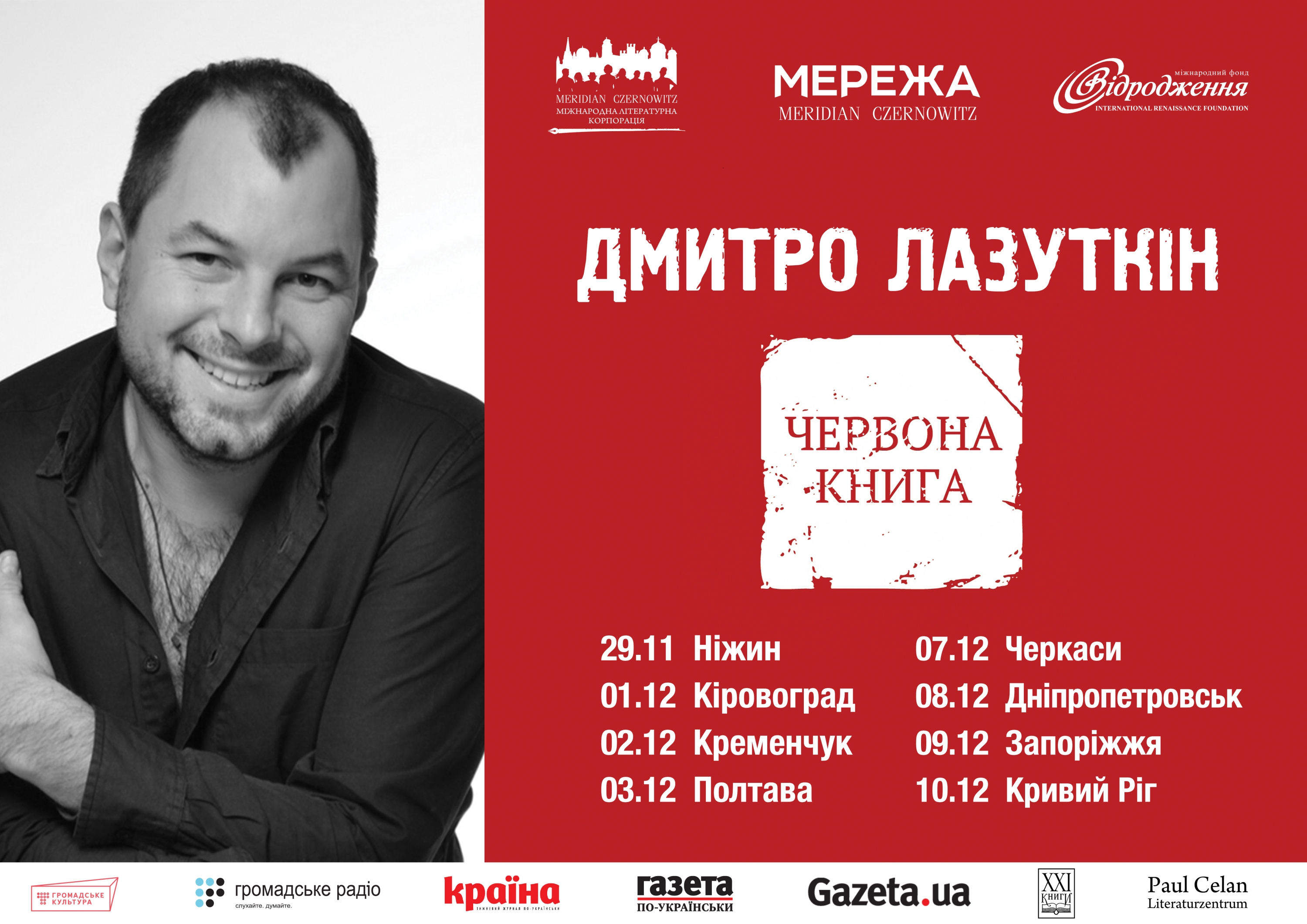 Протягом листопада-грудня Дмитро Лазуткін із поетичною збіркою «Червона книга» відвідає 8 міст. Серед них — Кременчук, у другий день грудня.