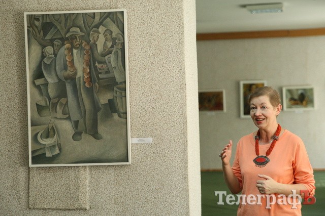 В экспозиции представлены живопись графика и декоративно-прикладное искусство. На картинах много видов Кременчуга: Крюковский мост, набережная и острова Днепра, фонтан возле ПАТ «Кредмаш», улица 1905 года