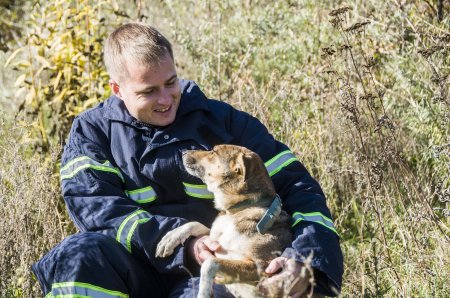 Під час фотографування рятувальники навіть встигли потоваришувати з собаками.