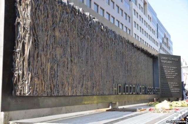 Пам'ятник називається «Пшеничне поле» і зображений у вигляді величезної вертикальної бронзової плити на кам'яній основі. На ній відтворено 10-метрове поле пшеничних колосків - спершу здорових, а потім зів’ялих і зникаючих. Поруч з бронзовою плитою розміщений текст з коротким описом, англійською та російською мовами про Голодомор в Україні
