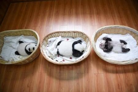 Детёнышей панды, недавно родившихся в Центре разведения гигантских панд в китайском городе Яань, впервые показали журналистам