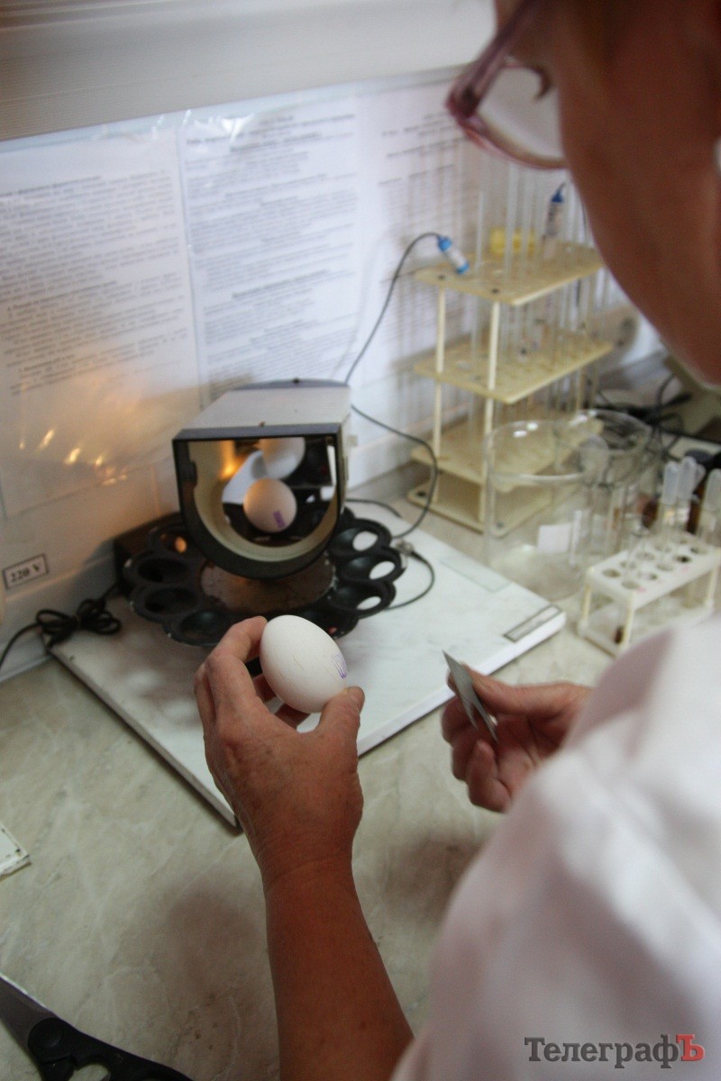 Яйця також «приїжджають» з ветеринарними свідоцтвами. А лаборанти відправляють їх на овоскопію, або просвічування.
