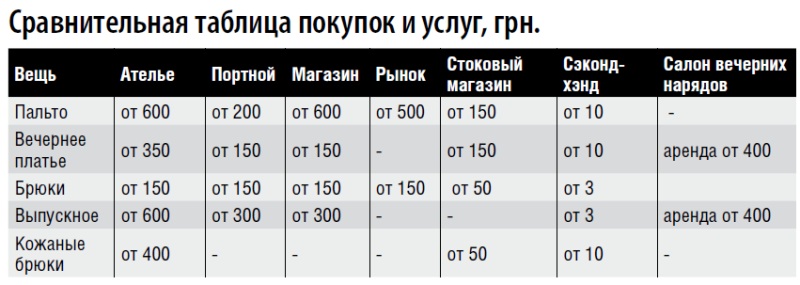 В магазинах костюмов за 300 грн, добротного зимнего мужского пальто за 500 грн вы не найдете. Однако, за вечерними нарядами лучше идти в салоны-магазины. Там от 250 грн из шелка, атласа, трикотажа, гипюра вы сможете купить все, что вам понравится.