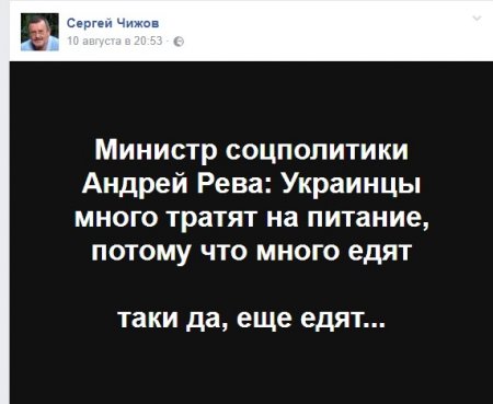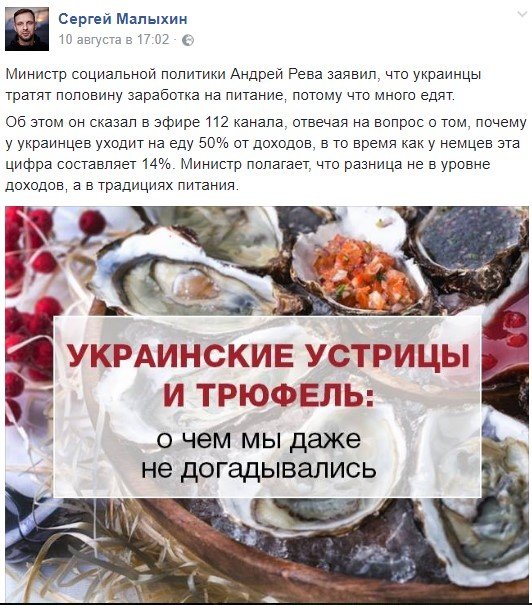 В соцсетях бурно обсуждают заявление министра соцполитики Андрея Ревы о том, что украинцы слишком много едят. А вы с ним согласны?