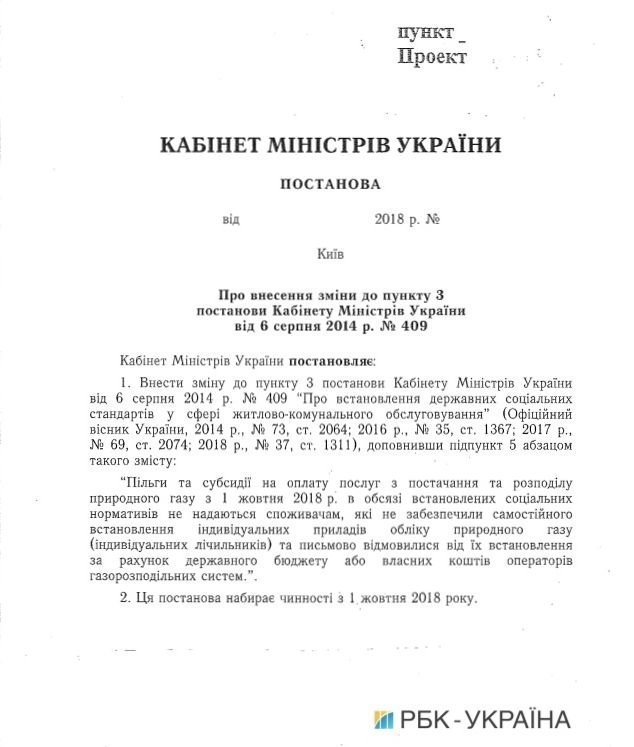 22 августа в ряде всеукраинских СМИ появились сообщения о том, что украинцам, потребляющим газ без газовых счетчиков, с первого октября 2018 года отменят субсидии. Многие ссылались на «Интерфакс-Украина». Сообщалось, что такое решение принял КМУ на своем заседании.