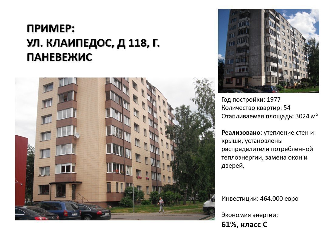 В Литве эту проблему решили просто: получателям субсидий кредит полностью компенсирует государство. Таким образом, у малообеспеченных нет причин отказываться от термомодернизации в доме. Для того чтобы участвовать в госпрограмме, нужно согласие более чем половины совладельцев дома.