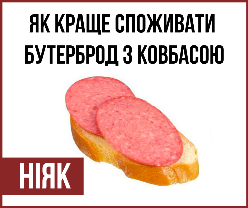 За словами Супрун, здорова альтернатива ковбасі — це скибочка сала, чорний хліб та гірчиця.