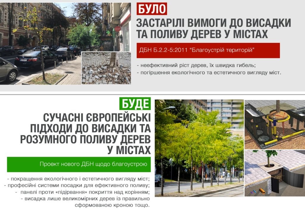 Міністерство регіонального розвитку, будівництва та житлово-комунального господарства України планує повністю змінити старі норми висадки, догляду та поливу дерев вздовж вулиць, алей і на площах на більш сучасні. Як повідомили у Міністерстві, зараз вносяться зміни у державні будівельні норми щодо благоустрою, зокрема, у частині озеленення.