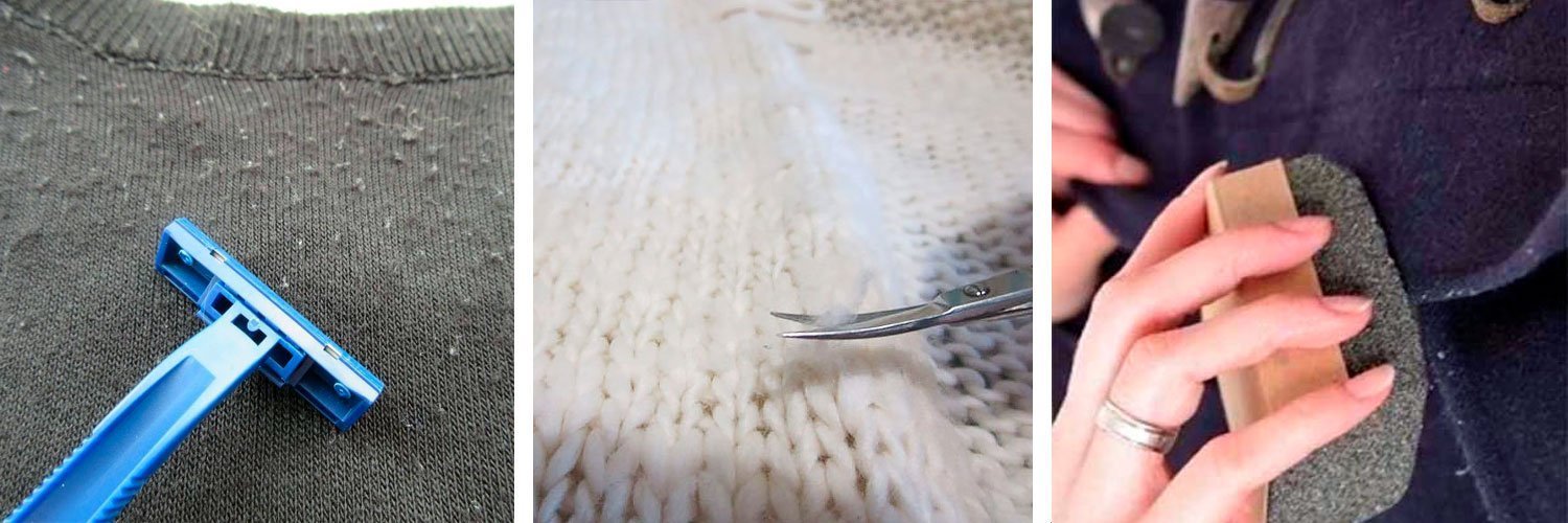 У боротьбі з ковтунцями можна використовувати звичайний станок для гоління. Ним потрібно обережно провести по тканині, зрізуючи усі ковтунці.