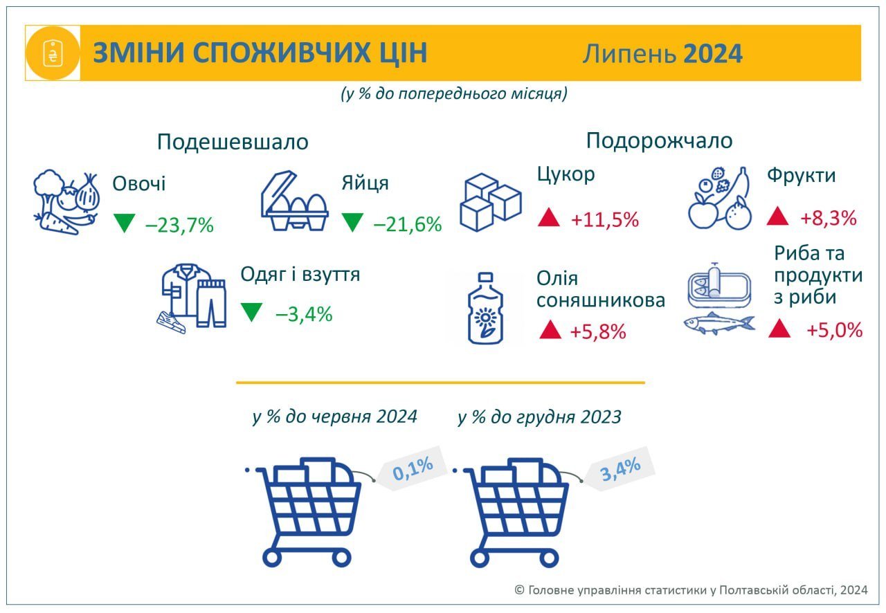Філіп Пронін дав посилання на інформацію Головного управління статистики у Полтавській області, яке опублікувало індекси споживчих цін в області у липні 2024 року.