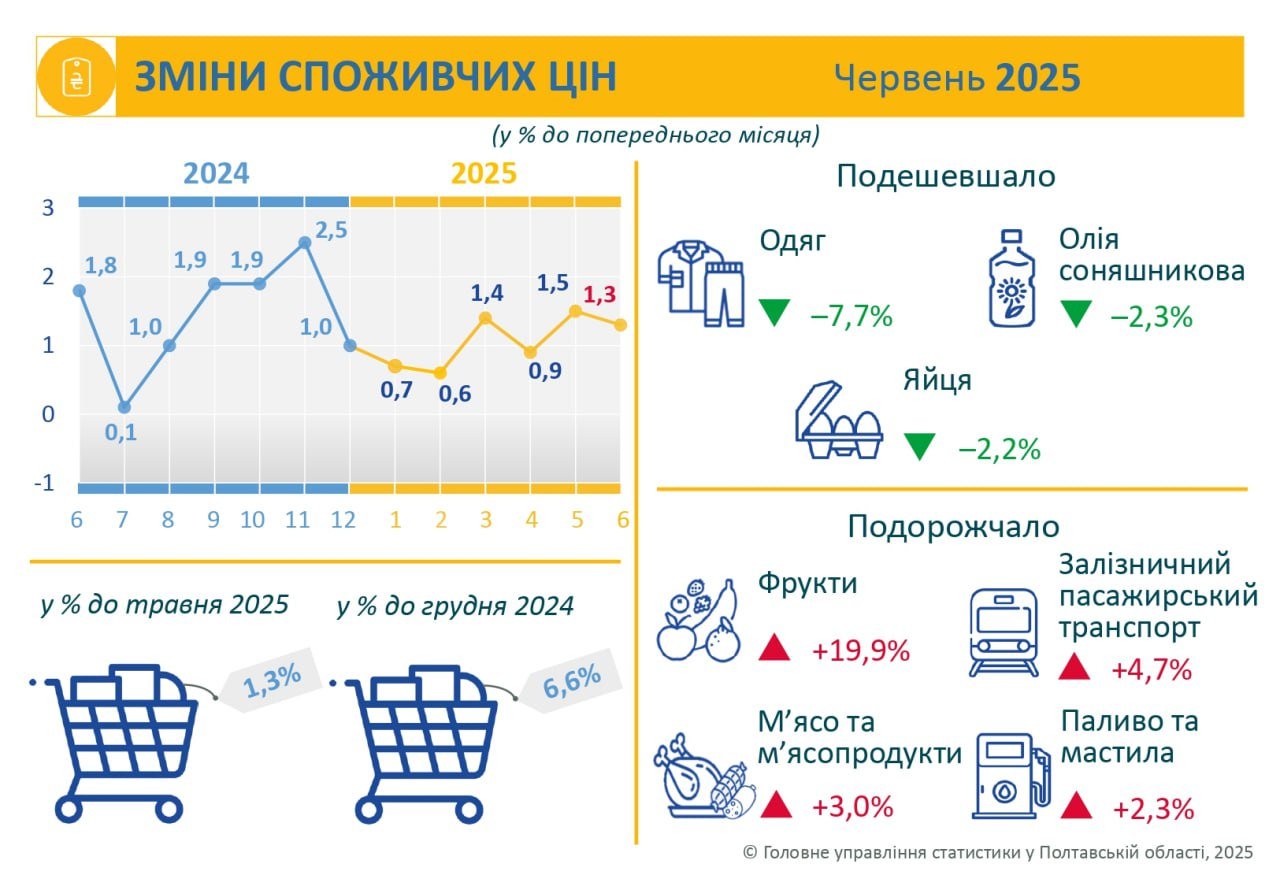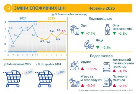 Протягом червня на споживчому ринку Полтавщини здешевшали деякі товари. Про це повідомила пресслужба Полтавської ОВА.