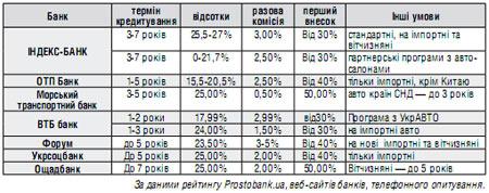 – У випадку неповернення кредиту, банку невигідно буде продавати таке авто на аукціоні, – сказали в одному з банків.«ТелеграфЪ» пошукав найцікавіші пропозиції по автокредитуванню – на офіційних сайтах банків, зателефонував у кременчуцькі філії і подивився рейтинги на сайті www.prostobank.ua. Результати – у таблиці.