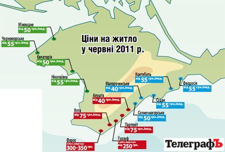 Поспілкувавшись із місцевими туроператорами, ми з’ясували, почому нині економ-варіанти житла. А також поцікавилися цією ж інформацією на сайті www.more.ua. До речі, з власного досвіду: за допомогою цього сайту, де розміщуються і фото кімнат або номерів, у минулому сезоні ми підшукали недороге та доволі пристойне житло у Феодосії. Результати наших досліджень — на «ціновій» карті Криму. До речі, якщо порівняти з червнем минулого року, то ціни на оренду житла в Криму або не змінилися або подорожчали на 10-15 гривень за людину. Щоправда, як відзначають туроператори, ціни на «місце під сонцем» в липні підвищаться на 10-25 гривень.