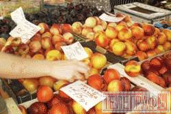 Персики на ринку переважно імпортні. Завозять їх із Греції, Іспанії, Турції. Коштують заморські фрукти чимало: 12-14 гривень за кілограм. Дрібненькі персики, більш схожі на абрикоси, – це наші, із Кременчуцького району. За них просять по 7-8 гривень за кілограм. Походивши по рядах, помічаємо, що кримських персиків майже немає.