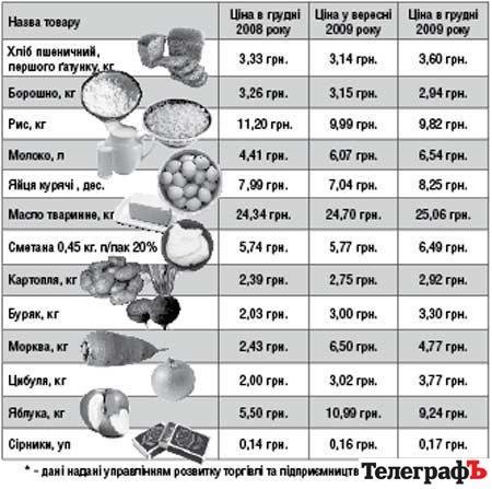 В управлінні кажуть, що зниження ціни у порівнянні з вереснем, але не груднем 2008 року відбувається на крупи та борошно, моркву та яблука (дивись порівняльні таблиці*).