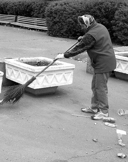 – Наша компанія – замовник робіт, – пояснює Віктор Шкурат. – Нас зараз не хвилює, скільки потрібно двірників – це проблема підрядника, який відповідає за територію. Нехай він хоч бомжам по п‘ятірці платитиме. Бо зараз з‘явилися приватні підприємства – підрядники, які пропонують комплексне обслуговування будинку. Вони кажуть: «Дайте нам роботу. Можете зараз і не платити – ми зробимо, а заплатите пізніше».