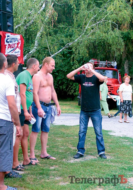 Пивна команда "Джмелі" перемагає в естафетному спустошенні пінного напою. Учасники та глядачі схвально "гудуть"