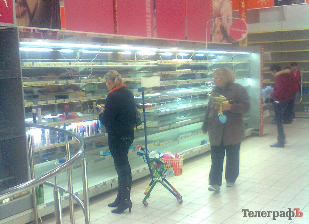 – Коли я зайшла всередину, було таке враження, що кінець світу вже настав, – розповідає кременужанка Лілія. – Це шалений натовп, що хапає з полиць усе підряд… Бабуся котила візочок, що до гори був заповнений крупами та макаронами. Я спитала, навіщо їй стільки, бо ж зіпсується. А жінка відповіла, що їй до кінця життя вистачить. Я сама нічого не купила. У супермаркеті працювали лише три каси. У черзі було, мабуть, із 50 чоловік. Там стояли годинами.