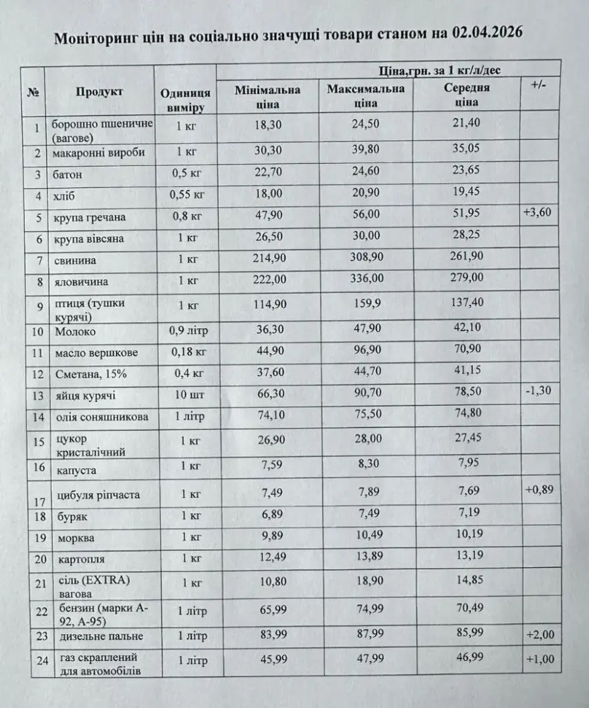 Кременчуцьке районне управління Держпродспоживслужби провело моніторинг цін на соціально значущі товари у торгівельних закладах району станом на 2 квітня. З цією інформацією наше видання ознайомила Кременчуцька районна військова адміністрація.
