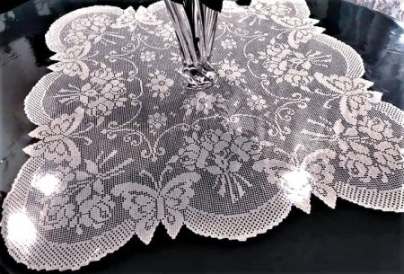 Її перша велика робота — мереживна скатертина з тонкої пряжі. Коли її творила, вона здавалася нескінченною. Але зараз жінка дуже швидко, з великим задоволенням створює найрізноманітніші елементи декору. В її колекції скатертини, серветки, покривала, фіранки, декоративні подушки.