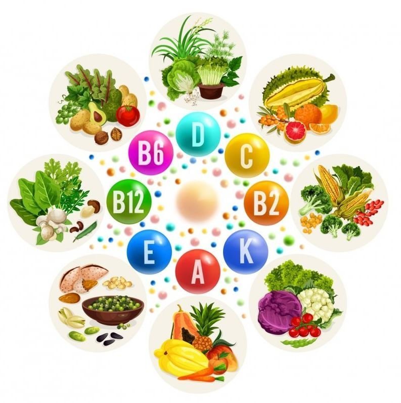 Шипшина, обліпиха, смородина, аґрус, лимон, листові овочі, яблука, ананаси, шпинат.