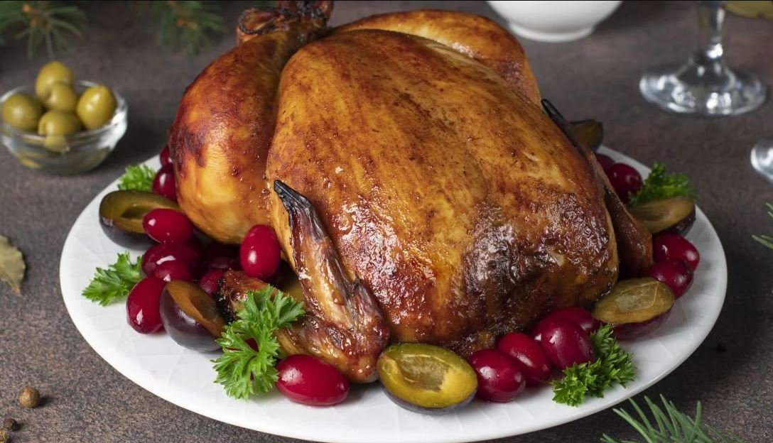 Готову курку викладіть на тарілку, прикрасьте зеленню та подавайте разом із журавлинним соусом.