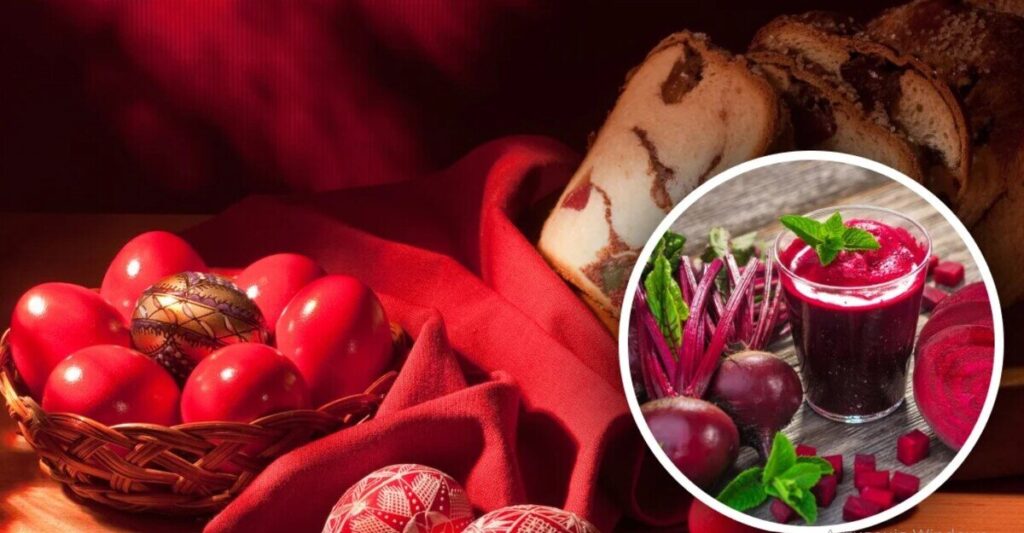 Ніжно-рожевого, карміново-червоного і бордового кольору шкаралупу отримують завдяки відвару або соку буряка. Коренеплід має відмінні фарбувальні властивості, головне витримати крашанки достатню кількість часу і не забувати перевіряти колір.