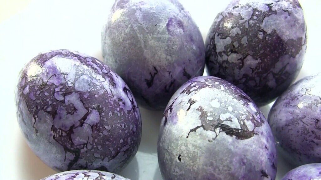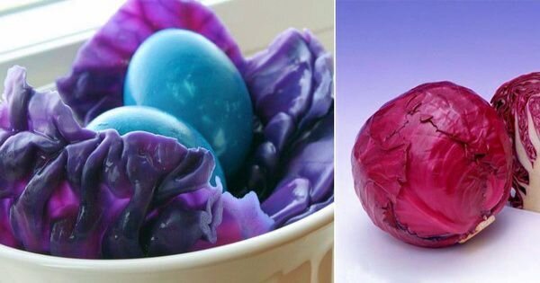 Щоб отримати ніжно-блакитний або ніжно-бузковий колір шкаралупи, спробуйте червону капусту. Годиться для цього як відвар, так і сік. У кожному з варіантів необхідно попередньо зварити яйця круто, а потім замочити на 3-5 годин у концентраті. Якщо залишити яйця на ніч, вийде глибокий небесно-блакитний відтінок, не менш яскравий, ніж після штучного барвника.