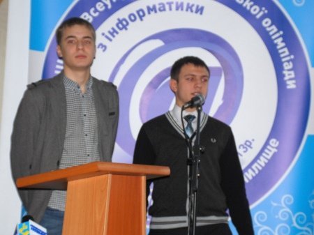 2-3 лютого на базі Кременчуцького педагогічного училища ім. Макаренка пройшов обласний етап Всеукраїнської учнівської олімпіади з інформатики. Позмагатися за звання найкращого з’їхалось 75 учасників. 21 з них – вихованці ліцею, який працює при училищі ім. Макаренка. Інформатикою з учнями в кременчуцькому педучилищі займається заслужений вчитель України Валентин Іванович Мельник. Тож і результати у його вихованців вражаючі. Абсолютними переможцями обласної олімпіади стали Роман Рубаненко та Роман Фурко (на фото).