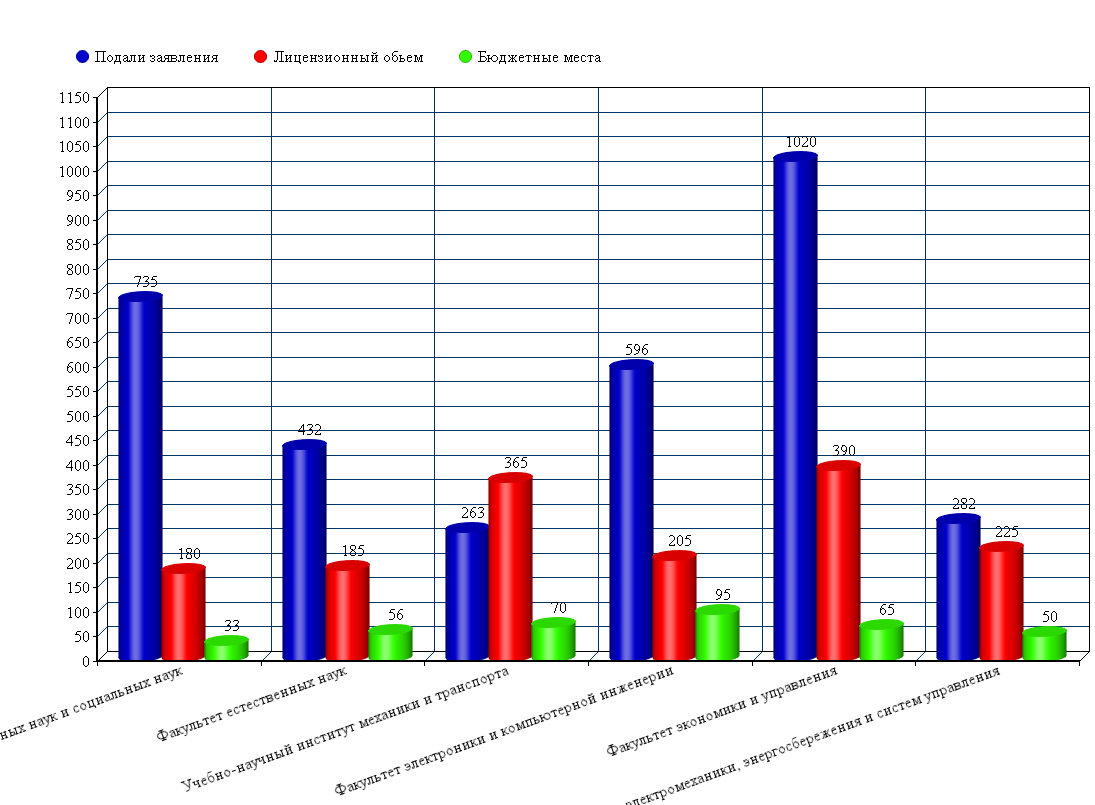 Таким образом, на момент подачи заявлений конкурс на 1 место на экономическом факультете – 2-3 человека, а на 1 бюджетное место – 15. В то же время на факультет механики и транспорта может поступить каждый, но только один из четырех на «бюджет».
