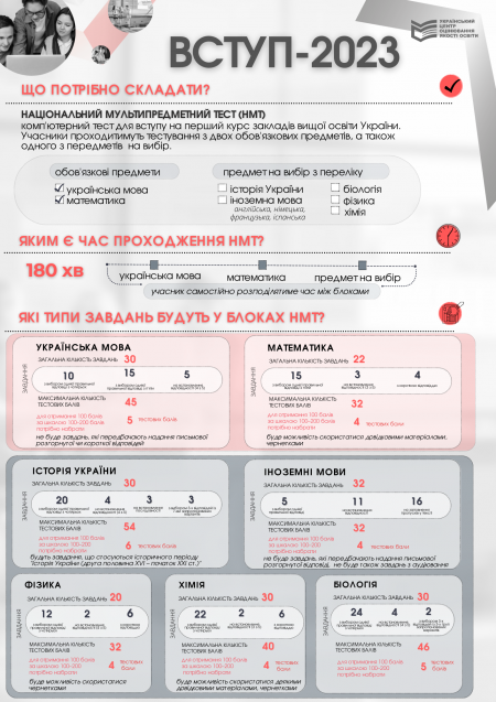 Як ТЪ писав раніше, у 2023 році (як і торік) замість ЗНО для вступу на бакалаврський (магістерський – для медицини) рівень вищої освіти абітурієнти складатимуть національний мультипредметний тест. Але якщо минулого року вступники складали лише обов’язкові предмети, то у цьому навчальному році НМТ міститиме три блоки завдань, два з яких – обов’язкові (українська мова та математика), а третій – на вибір вступника. Предмет, тестування з якого вступник бажатиме пройти на вибір, він зазначатиме під час реєстрації на тестування.