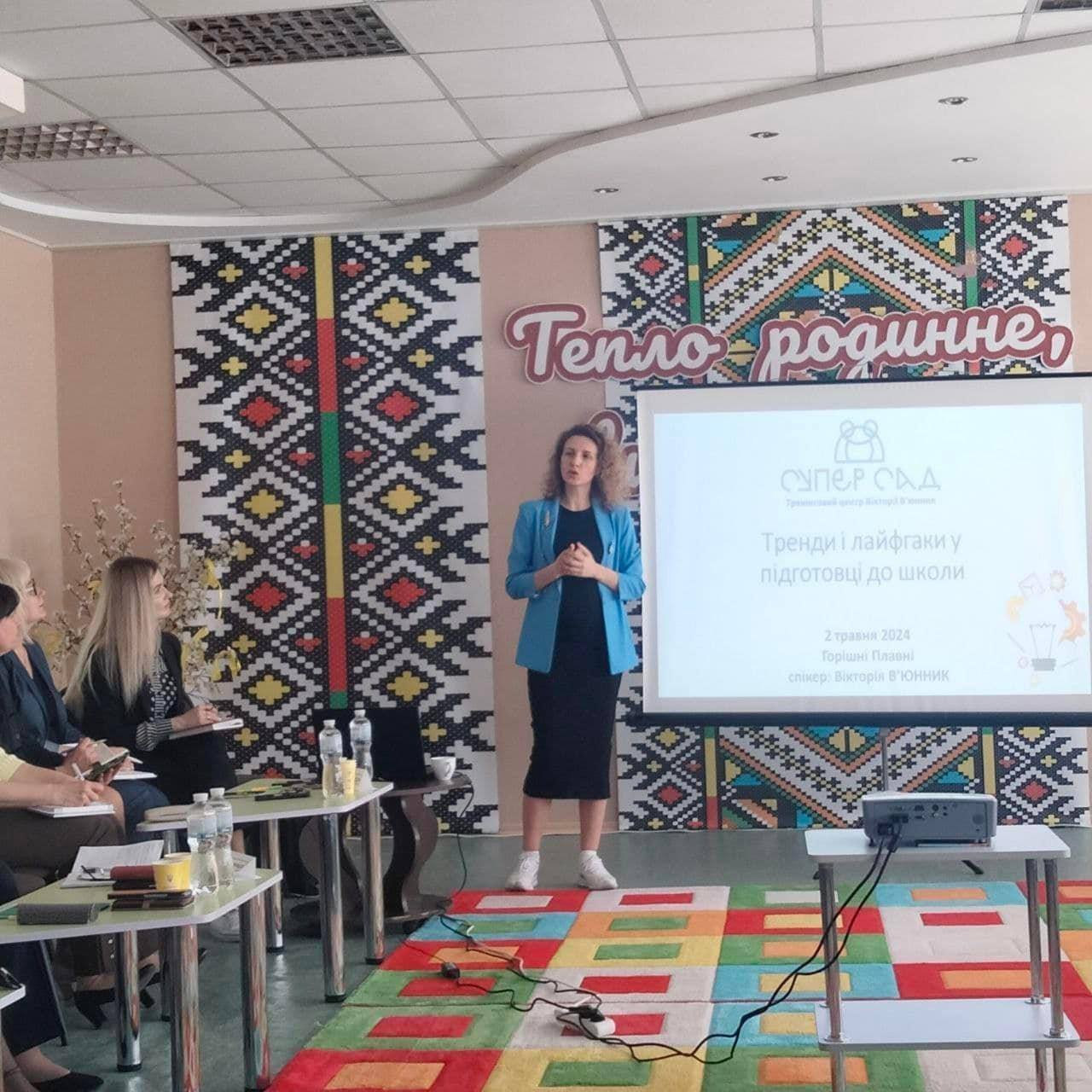 Семінар-супутник «Підготовка до школи: Хто? Що? Як? Розвиток навичок майбутнього» відбувся 2 травня в дитячому садку «Попелюшка». Його учасниками стали представники міського відділу освіти на чолі з Лілією Щербиною, Центру професійного розвитку педагогічних працівників під керівництвом Ірини Горобченко, закладів дошкільної освіти. Спікерка семінару — авторка 30 посібників для вихователів і батьків Вікторія В’юнник, яка є аспіранткою кафедри дошкільної освіти Київського столичного університету імені Бориса Грінченка, керівником і головним тренером центру «Супер Сад».