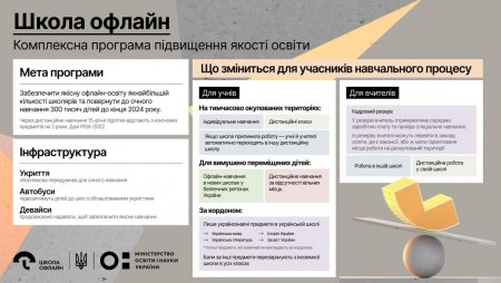 За останні 4 роки українська система освіти зазнала значних втрат. COVID-19 та повномасштабна війна відобразилися на динаміці й досягненнях учнів. Як наслідок — українські діти відстають від однолітків з інших країн на 1,5–2,5 роки навчання. Про це свідчить дослідження PISA–2022. Тож МОН і Мінцифра презентували комплексну політику «Школа офлайн», мета якої — повернути дітей до безпечного очного навчання, а там, де це неможливо, — створити умови для якісної та ефективної дистанційної освіти, повідомляє пресслужба Міносвіти.