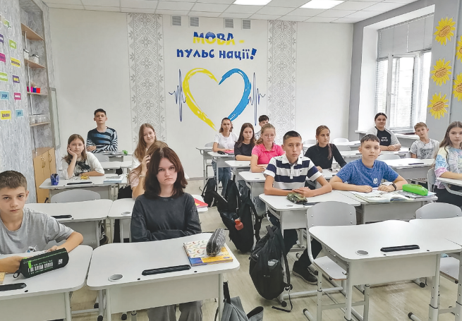 В оновленому кабінеті розміщено інформаційний стенд з української мови «Мовна скарбничка». На ньому представлено головні члени речення, другорядні, будова слова, різні слова із правильним наголошуванням. Кабінет оснащено інтерактивною дошкою з мультимедійним проєктором для перегляду фільмів та презентацій, кольоровим принтером, на якому можна роздрукувати матеріали під час уроку.