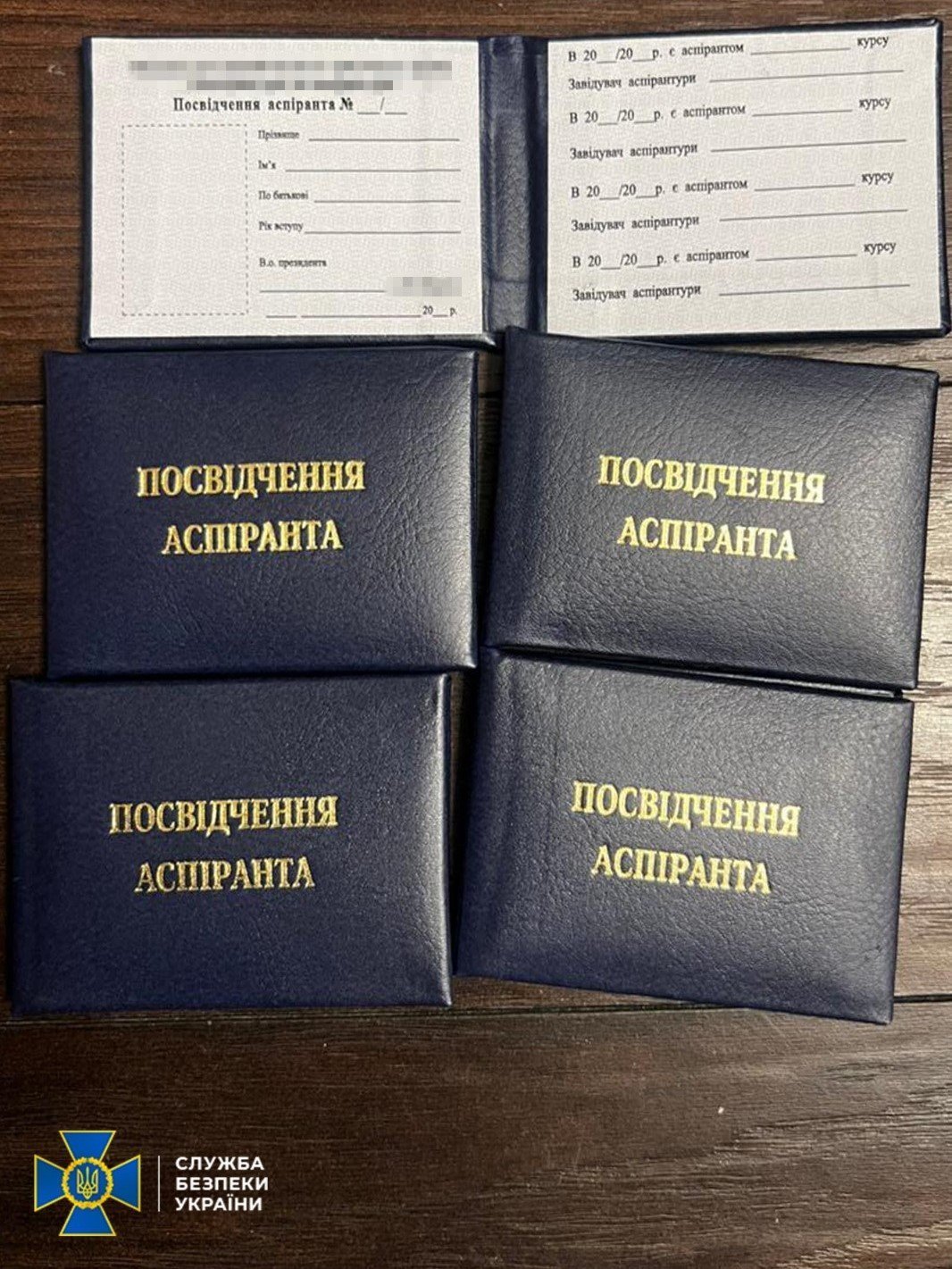 У Київській області правоохоронці викрили заступника директора фінансового коледжу та двох його підлеглих, які «задніми числами» оформлювали своїх клієнтів до аспірантури. Для реалізації злочину фігуранти супроводжували «вступ» ухилянтів до приватного науково-дослідного інституту як студентів коледжу, в якому вони насправді не навчалися.