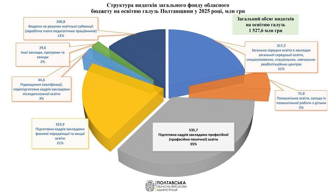 У 2025 році на Полтавщині із обласного бюджету на фінансування освітньої галузі спрямують понад 1,5 мільярда гривень. Про це інформують у пресслужбі Полтавської облвійськадміністрації.