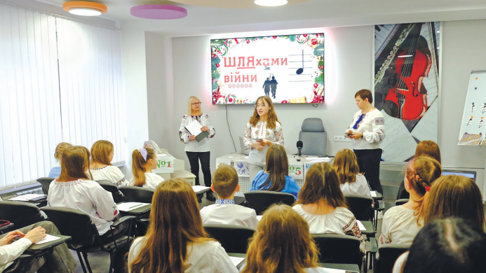 Вона запропонувала учням дізнатися деталі створення пісні за допомогою «мандрівки» через основні віхи цієї історії, збирати й фіксувати на нотному стані ноти твору. А дев’ятикласниці, вихованці музичної школи Поліні Кривошеї дала окреме доручення: упродовж уроку записувати ноти за допомогою комп’ютерної програми MuseScore.