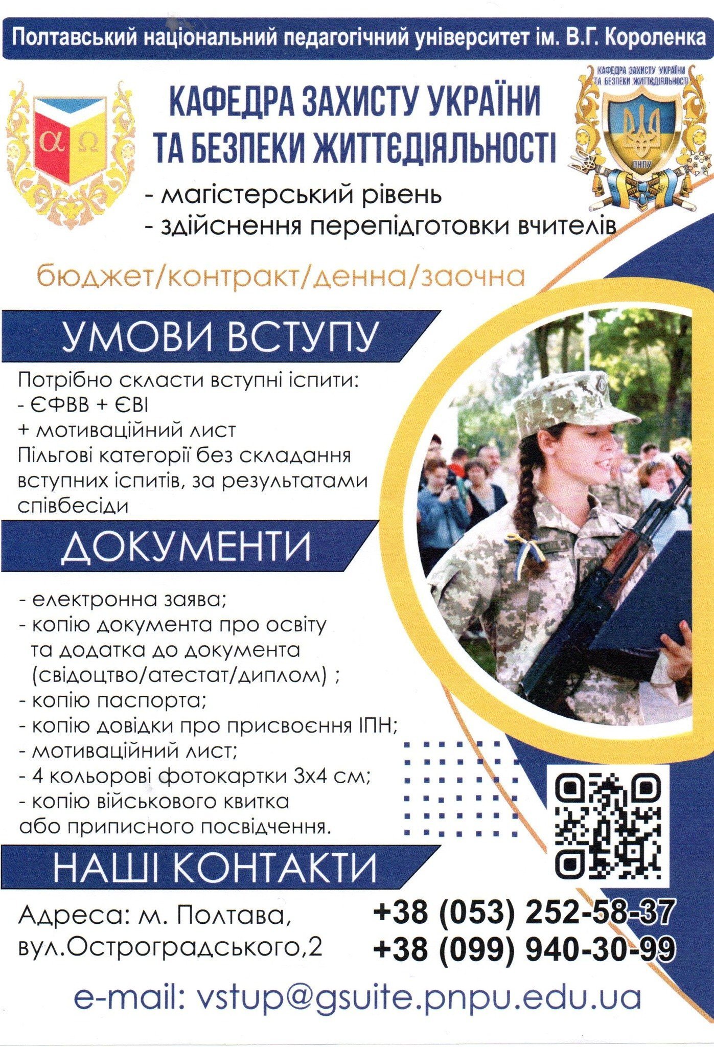Кафедра «Захисту України та безпеки життєдіяльності» в Полтавському національному педагогічному університеті імені В. Г. Короленка почала функціонувати з 1 березня цього року.