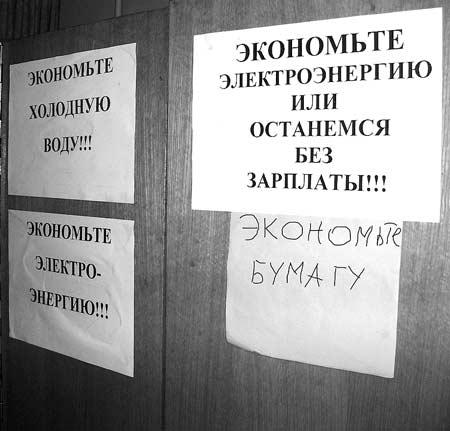 Це – одна з аудиторій першого корпусу університету. Плакати на її стіні свідчать, наскільки близько до серця народ приймає заклики керівництва економити. Спершу тут повісили плакатик із закликом економити холодну воду. Потім написали про електроенергію. Далі з’явився плакат із неприємним натяком щодо зарплати. І, нарешті, якийсь практичний жартівник тремтячою рукою вивів заклик економити папір. І хто з ним не погодиться?