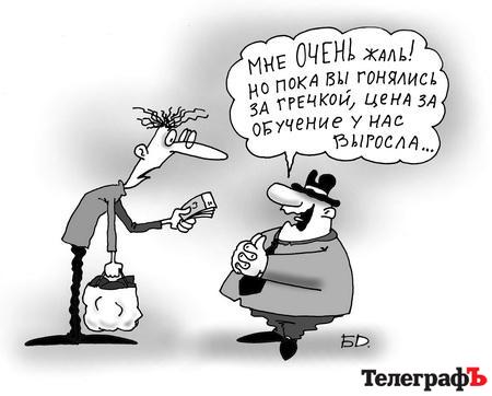 Ефективна все-таки штука ця пропаганда. Застосування її простих методів дає владі можливість водити цілий народ на вервечці – як сліпу коняку або мале дурне теля. А методи такі – якщо хочеш відволікти увагу народу від чогось серйозного, активно галасуй навколо будь-якої штучно створеної проблеми. Кричи сильніше і переконуй суспільство, що від цієї страшенної проблеми залежить все його життя. А поки переконане тобою суспільство по-дурному кліпає очима, тихим сапом вирішуй на власну користь інші, справді важливі проблеми – суспільство цього навіть не помітить. За версією «Телеграфа», саме це зараз відбувається в освітній галузі України. Поки народ, як молодий бичок, втупився очима у червону ганчірку, на якій написано: «Гречка подорожчала!!!», – представники влади тишком-нишком протягують законопроект, який не просто збільшить ціну на навчання у ВНЗ. Він зробить її непрогнозованою. Це торкнеться десятків тисяч студентів та їхніх батьків – бо ніхто з них не зможе прорахувати, чи вистачить у родини коштів на повний курс навчання дитини? Та ніхто про цю проблему не галасує, телеканали її не висвітлюють, урядовці коментарів не дають. А якщо так, давайте самі подивимось, що готує нам уряд.